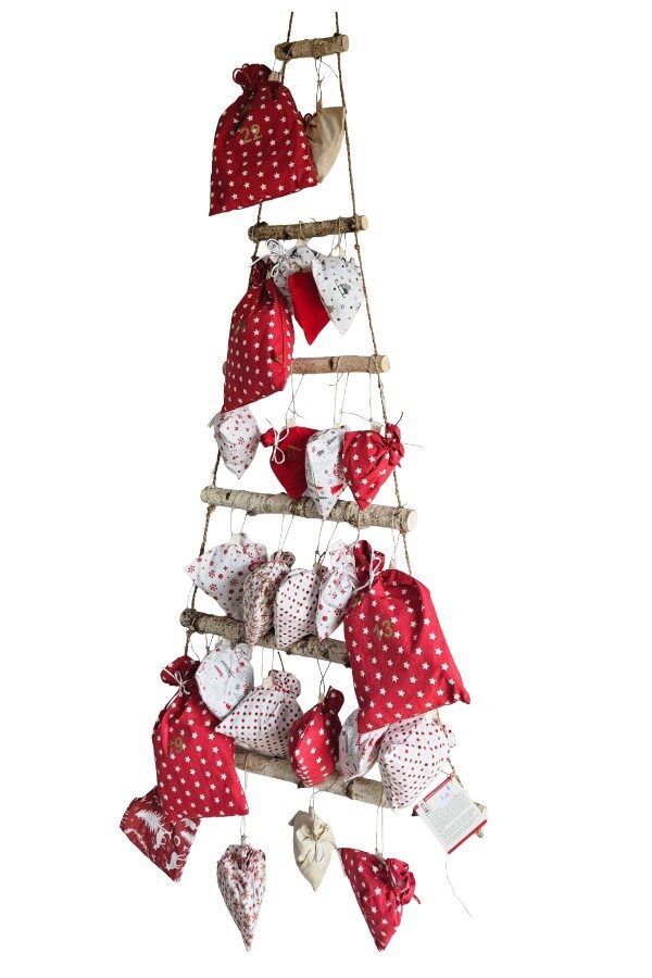 Der liebevoll gestaltete Adventskalender mit handgemachten Säcklis in unterschiedlichen Grössen und Formen zum selber Befüllen. Dank der LED-Lichterkette erhält der Adventskalender am Abend seinen ganz speziellen Auftritt.