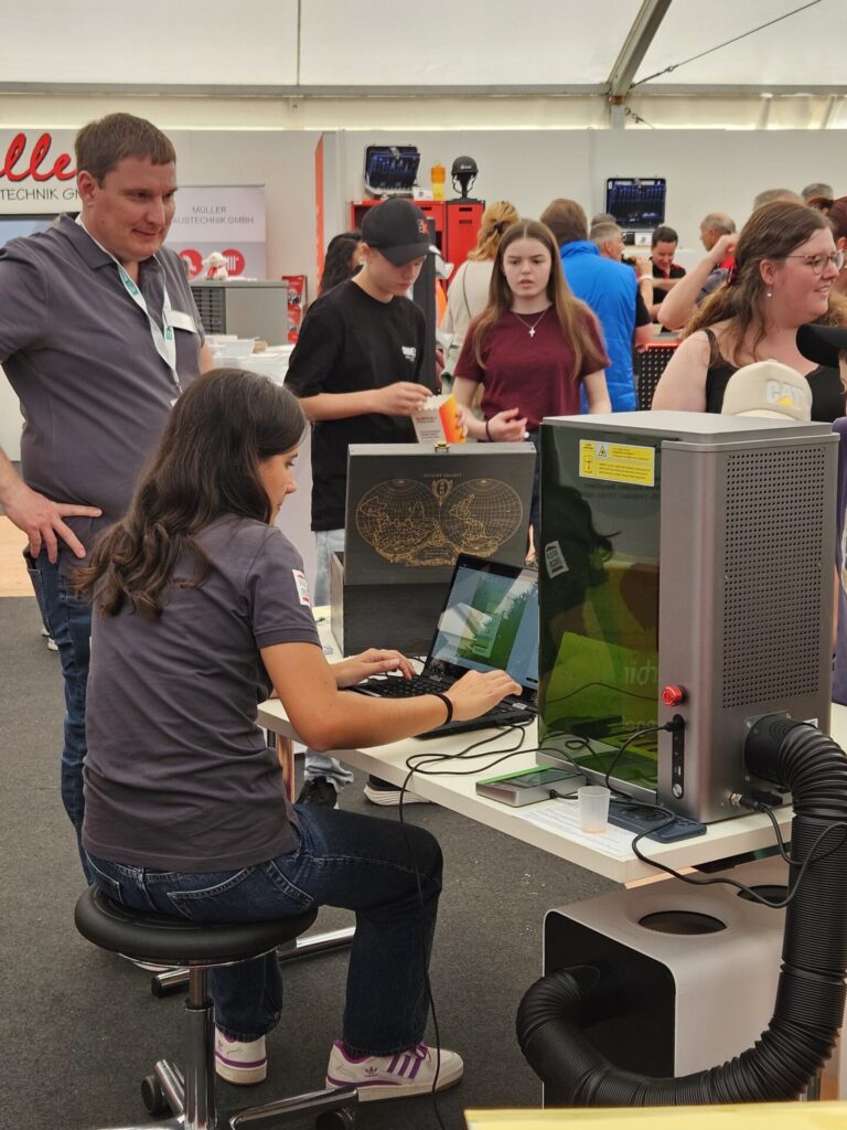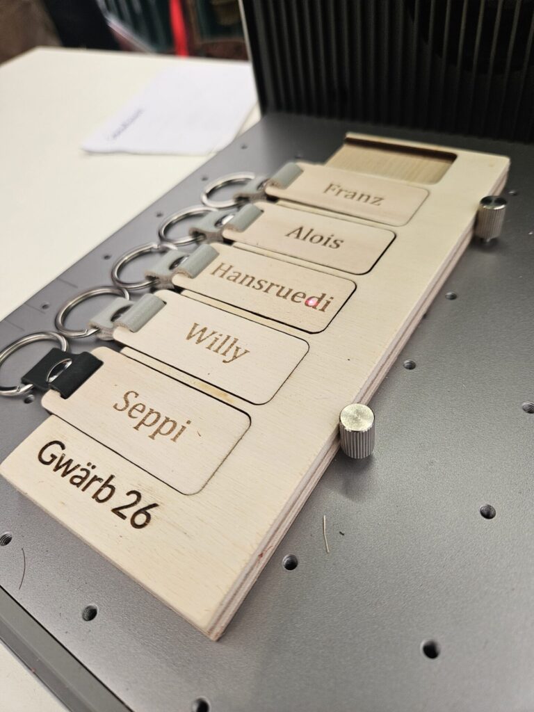 Der neue Werkstatt-Superstar? Unser Laser, der non-stop personalisierte Schlüsselanhänger zauberte.